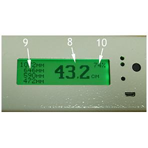 Устройство с точностью до 1 мм измеряет отскок мячей для гольфа , тенниса и подобным им. Пример измерения абсолютной высоты отскока мяча для мини-гольфа. После включения устройства нажатием кнопки можно измерить температуру мяча перед тестированием. Мяч необходимо положить на термодатчик рамки,нажать и удерживать кнопку включения устройства. На индикаторе появится значение его температуры. Тестирование должно проходить при температуре мяча 25оС. Мяч сбрасывается с высоты 1 м. После отскока мяча от поверхности и иго приземления на индикаторе появляется значение высоты отскока.При продолжении тестирования последние значение высвечивается большими цифрами и четыре предыдущих малыми. Для выключение устройства необходимо быстро , не более одной секунды, нажать на кнопку включения или устройство само выключится через 5 минут. Аккумулятор устройства заряжается кабелем USB C. 1. Рамка 2. Индикатор 3. Готовность рамки к тестированию. 4. Процесс измерения 5. Кнопка включения 6. Индикатор зарядки 7. Разъем для кабеля 8. Результат последнего измерения 9. Результат предыдущих измерений 10. Уровень заряда аккумулятора Принимаются заказы на изготовление партее рамок.